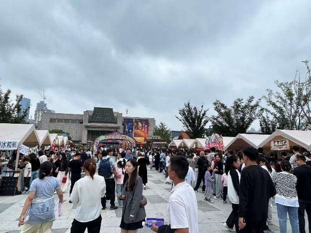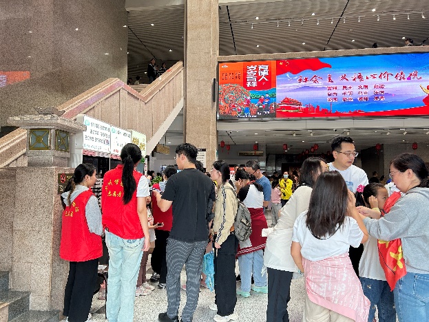 在游覽中也要滿足游客的口腹之欲,我館圍繞非遺文創主題展示徐州特色美食,糖畫、烤串、徐博卷、文創雪糕、徐州米線,徐州香包、徐州剪紙、文創冰箱貼等多種具有徐州特色的伴手禮以逛集市賞文化吃美食的形式來擴大游客消費引流效應,在獵奇的消費中感受假期生活的趣味與輕松。并在集市中設立愛國表白墻,吸引數萬名游客打卡祝福祖國生日快樂,昌盛永駐。